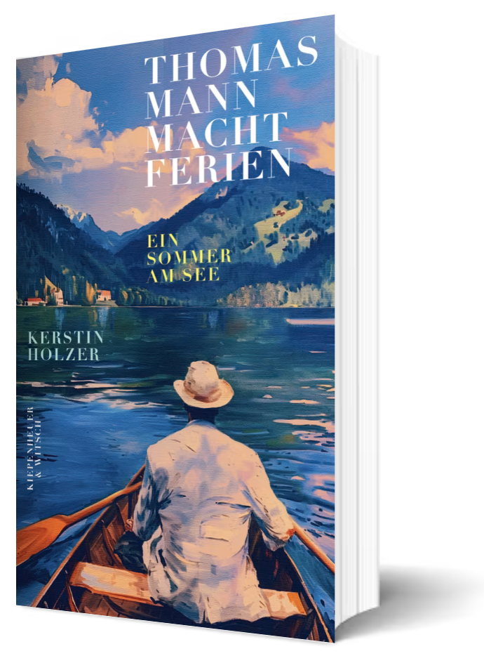 Die gebürtige Bonnnerin Kerstin Holzer, Jahrgang 1967, ist durchaus eine Kennerin der Familie Mann, hat sie doch schon zwei bemerkenswerte Bücher über Monika Mann und Elisabeth Mann-Borgese geschrieben. In „Thomas Mann macht Ferien. Ein Sommer am See„, erschienen im April 2025 bei Kiepenheuer & Witsch, beschreibt sie die Sommerfrische der Familie Mann 1918 am Tegernsee. Der Aufenthalt ist davon geprägt, dass „Die Betrachtungen eines Unpolitischen“ kurz vor der Veröffentlichung steht und Thomas Mann schmerzhaft erkennen muss, dass er sich in seinen „unpolitischen“ Betrachtungen verkalkuliert hat und die Welt kurz vor Kriegsende eine ganz andere ist, als jene konservativ-monarchistische, die er in den Betrachtungen beschreibt und verteidigt. Zur Erholung schreibt er hier am See die Idylle „Herr und Hund“, genießt – soweit es für Thomas Mann eben geht – die Ferien im Kreise seiner Familie, freut sich an seinem Hund Bauchan und macht seine erste Bergwanderung auf einen immerhin knapp 1.700 Meter hohen Gipfel. Als dies ist dokumentiert, sachlich verbrieft und wird von Kerstin Holzer wunderbar leichtfüßig, tiefsinnig und fesselnd erzählt – vielleicht ist es eine neue Kategorie der „erzählenden Monografie“.